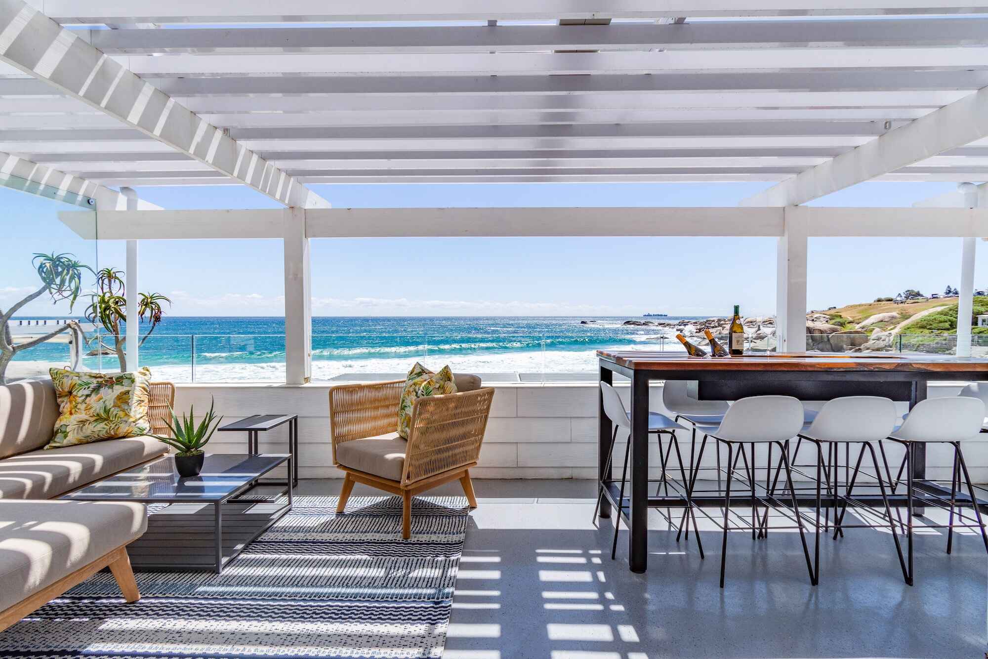 Positioned along the shores of Camps Bay, this beachfront holiday home was designed to embrace the rhythm of coastal living—celebrating light, connection, and a refined sense of ease. The brief called for an elevated yet relaxed retreat that could host family gatherings and vibrant entertaining, while honouring the uninterrupted ocean views.
